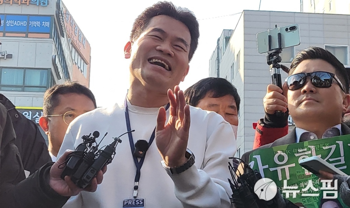 [서울=뉴스핌] 김영은 기자 = 이재명 대통령에 대한 명예훼손 등 혐의로 고발된 한국사 강사 출신 전한길씨가 경찰에 출석하며 "무리한 정치적 압박"이라고 주장했다.