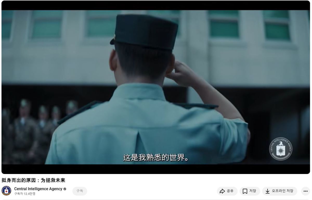 파이낸셜타임스(FT)에 따르면 CIA는 12일(현지시간) 유튜브에 '앞장서 나선 이유: 미래를 구하기 위해'라는 제목의 중국어 영상을 공개했다.