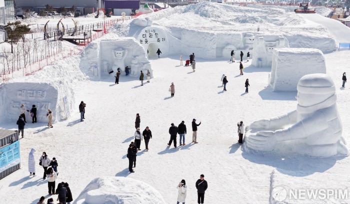 [서울=뉴스핌] 13일 평창군 대관령면 횡계리 송천 일대 축제장에서 개막한 전국 최고의 눈과 얼음축제인 '제34회 평창 대관령눈꽃축제'를 찾은 방문객들이 축제를 즐기고 있다. 밀라노-코르티나 동계올림픽 개최 시기에 맞춰 ‘동계 꿈나무 눈동이의 국가대표 성장기’를 주제로 열리는 올해 축제는 방문객들에게 다양한 눈과 얼음조각, 겨울 체험거리를 제공한다. 축제장 곳곳에는 대형 눈썰매장과 눈·얼음조각, 아이스카페 등이 조성돼 멋진 눈과 얼음조각 감상과 휴식을 취할 수 있고 크로스컨트리스키, 컬링, 바이애슬론 등 동계종목 체험 프로그램도 운영된다. [사진=평창관광문화재단 ] 2026.02.13 photo@newspim.com