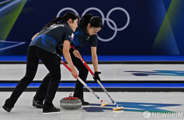 [코르티나담페초=로이터뉴스핌] 밀라노-코르티나 2026 동계올림픽 컬링 여자 라운드로빈에 출전한 대한민국 선수단이 지난 16일 이탈리아 코르티나담페초 코르티나 컬링 올림픽 스타디움에서 중국 팀과 경기를 펼치고 있다. 2026.02.17 photo@newspim.com