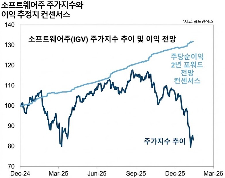 JP모간은 포지션 괴리와 펀더멘털 분석에 더해 밸류에이션도 저점 매수론의 논거로 댔다. 소프트웨어 업종의 주가가 이미 대폭 조정을 거쳤기 때문에 설령 AI 위협이 일부 현실화되더라도 현 가격에는 그 우려가 상당 부분 반영돼 있다는 거다. 잉여현금흐름이 탄탄한 우량 소프트웨어주는 하방 리스크 대비 반등 여력이 크다고 봤다.