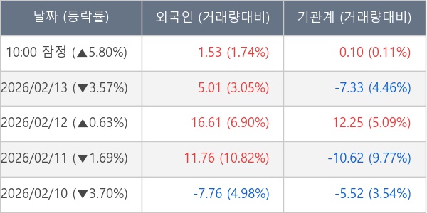 [서울=뉴스핌] 로보뉴스 = 19일 10시 15분 현재 고영(098460)은 외국인과 기관이 각각 1.53 만 주, 0.10 만 주 순매수(잠정) 하면서 전일 대비 5.80% (현재가 32,850원) 상승하고 있다.