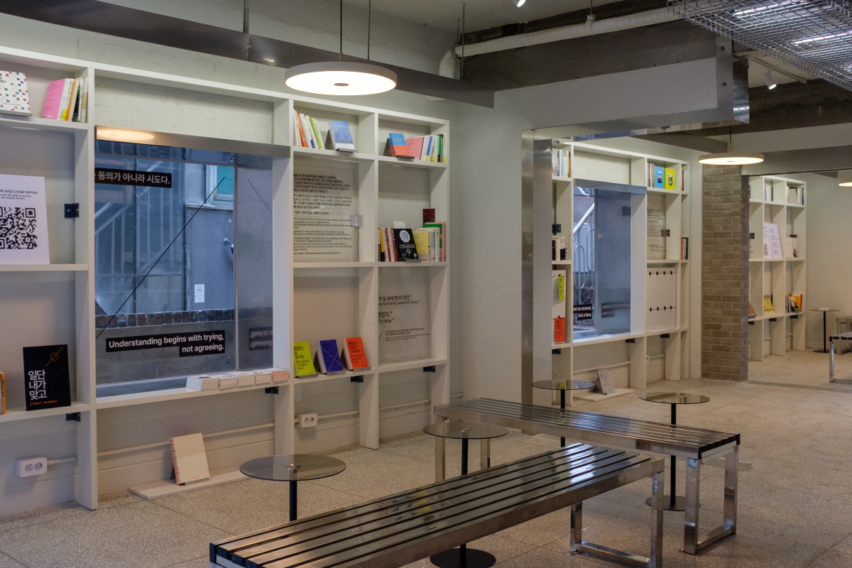 여행·디자인·음악·도시문화에 특화된 큐레이션뿐만 아니라 서울시를 주제로 한 다양한 도서를 비치했다. 또 읽기 쉬운 글로 바꿔주는 쉬운 글 AI 서비스도 함께 제공한다. 라운지에는 콘센트 좌석과 소규모 모임을 위한 테이블을 배치해 창작자, 프리랜서, 유학생, 관광객이 머무르며 정보와 경험을 나눌 수 있도록 했다.