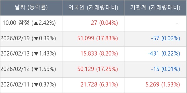 [표] 외국인ㆍ기관 순매매량 (단위 주)