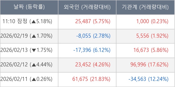 [표] 외국인ㆍ기관 순매매량 (단위 주)