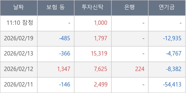※ 사모펀드 등 일부 기관의 순매매량은 표시되지 않음