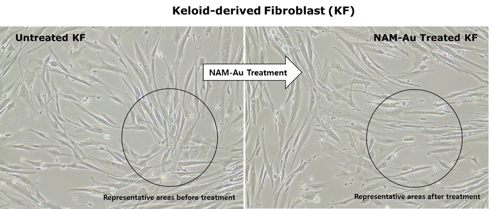 [서울=뉴스핌] 이나영 기자= 나노골드 복합소재 기반 전문기업 에이유랩스는 자체 개발 특수소재인 나이아신골드(NAM-Au)에 대한 켈로이드 섬유아세포 염증 및 섬유화 조절 연구에서 유의미한 데이터를 확보했다고 20일 밝혔다.