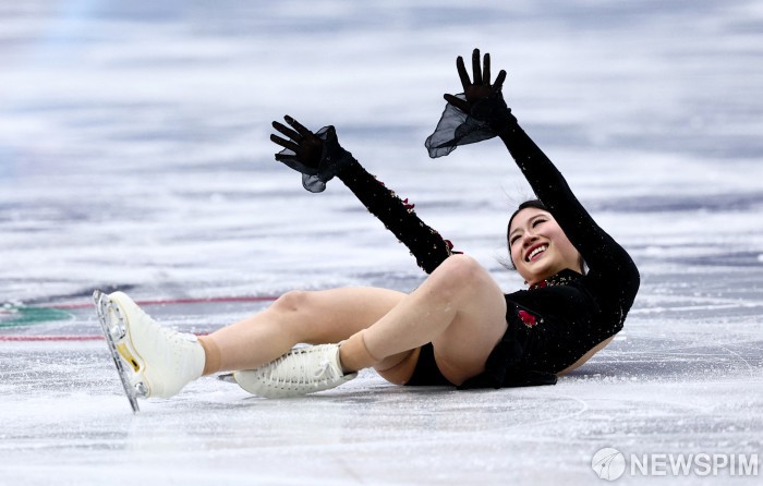 [밀라노=로이터뉴스핌] 밀라노 코르티나 2026 올림픽에 출전한 피겨스케이팅 선수 이해인이 지난 19일 이탈리아 밀라노 아이스 스케이팅 아레나에서 싱글 프리스케이팅 연기를 선보이고 있다. 2026.02.20 photo@newspim.com