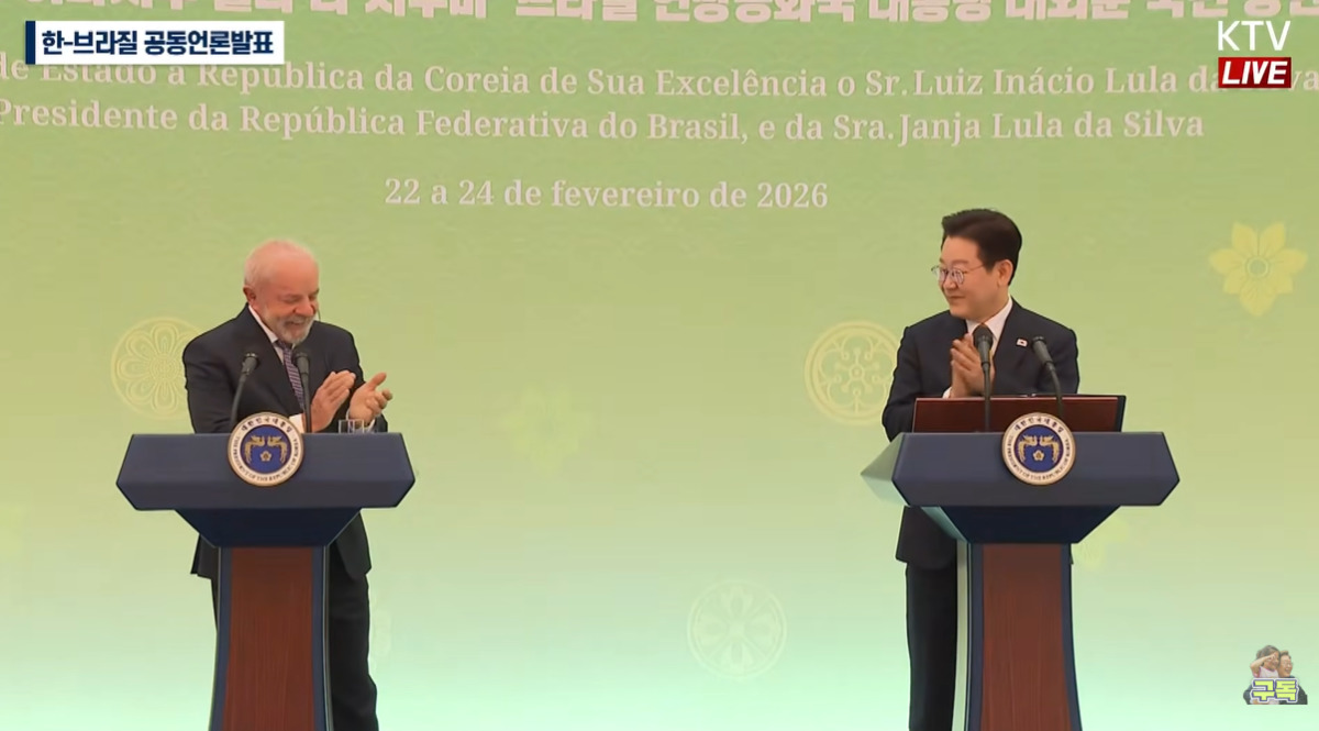 이 대통령은 "오랜 우방이자 글로벌 사우스 지역의 리더로서 양국이 글로벌 정세와 지역 현안에 관해서 긴밀히 논의하기로 했다"며 "브라질이 기후 변화 대응과 다자주의 복원 같은 글로벌 의제를 선도하고 있다는 점을 높이 평가한다"고 했다.
