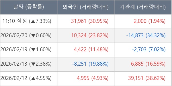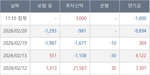 [표] 주요 기관별 순매매량 (단위 주)