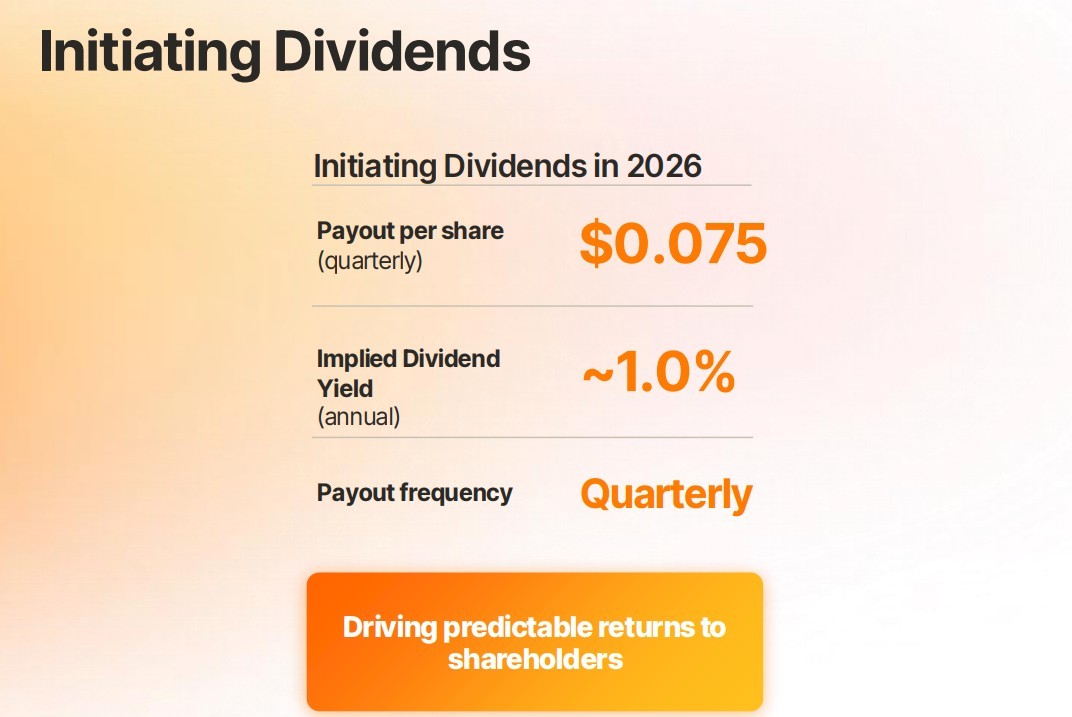 바이바브 아가르왈 최고변혁책임자 겸 부최고재무책임자(CFO)는 실적 발표 자리에서 "2026년 중간값 기준 5억 9000만 달러에 달하는 잉여현금흐름 성장에 자신감이 있다"며, "배당금은 자사주 매입을 보완하는 것이지 대체하는 것이 아니다"라고 강조했다.