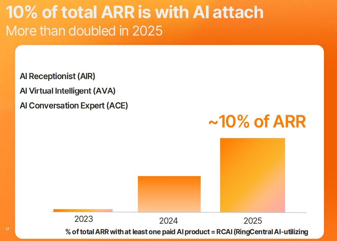 이번 실적에서 투자자들이 가장 주목한 부분은 AI 사업의 유의미한 수익화다. 링센트럴의 AI 기반 제품들은 2025년에 연간 반복 매출(ARR) 1억 달러를 처음으로 돌파했으며, 순수 AI ARR은 전년 대비 거의 세 배 증가했다.