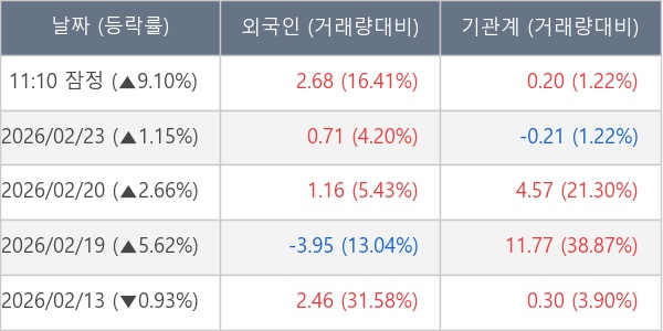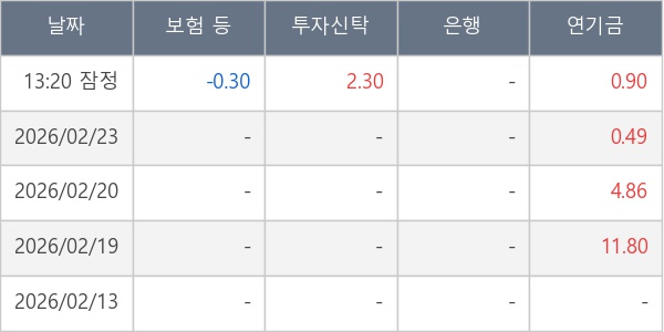 [표] 주요 기관별 순매매량 (단위 만주)