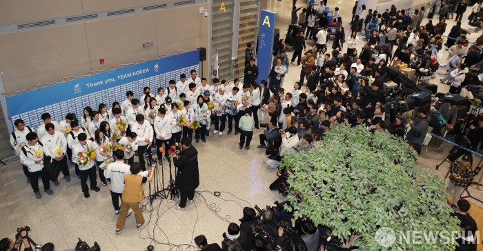 [영종도=뉴스핌] 류기찬 기자 = 2026 밀라노·코르티나담페초 동계 올림픽에 출전했던 쇼트트랙 최민정과 황대헌, 김길리 등 선수단이 24일 인천국제공항 제2여객터미널을 통해 귀국하고 있다. 2026.02.24 ryuchan0925@newspim.com