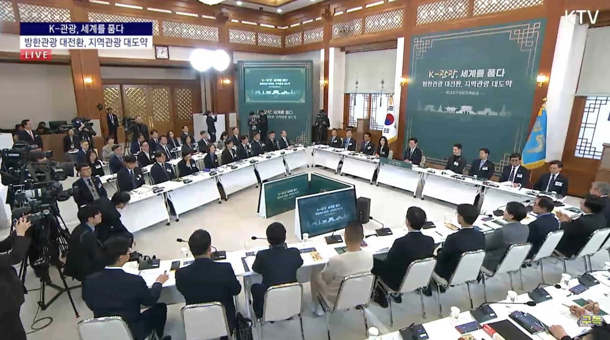 이 대통령은 "이미 한국 여행을 결정한 이들이 한국에서 어떻게 더 편안하게, 느낌좋게 (지내도록 한 뒤) 되돌려 보낼지도 고민하지만, '한국을 가야겠다'고 생각하게 만드는 방안이 무엇이 있을까 하는 의견을 듣고 싶다"며 "대한민국은 K-컬처와 촛불을 들어 권력을 내쫓는 등 유명한 나라가 됐지만, 그런 자연적인 요소말고 의도적으로 대한민국의 관광자원을 알리는 방법이 구체적으로 어떤 게 있는지 그런 의견을 모으려는 취지로 회의를 열었다"고 설명했다.