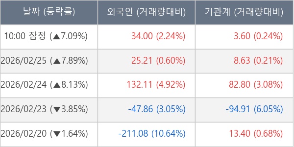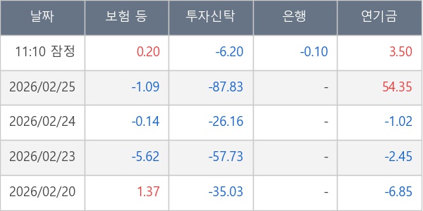 [표] 주요 기관별 순매매량 (단위 만주)