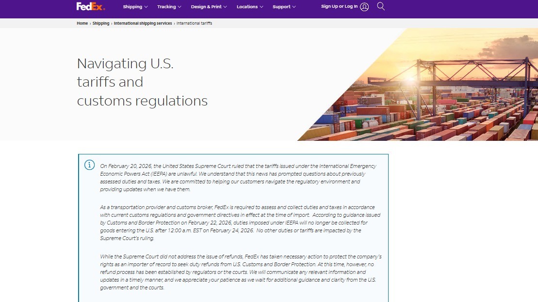 페덱스는 최근 발표한 성명에서 "연방법원이 트럼프 행정부가 부당하게 징수한 관세의 상환을 명령할 경우, 실제 비용을 부담한 화주(Shippers)와 소비자에게 환급금을 발생하는 대로(as refunds are issued) 반환할 것"이라고 밝혔다.