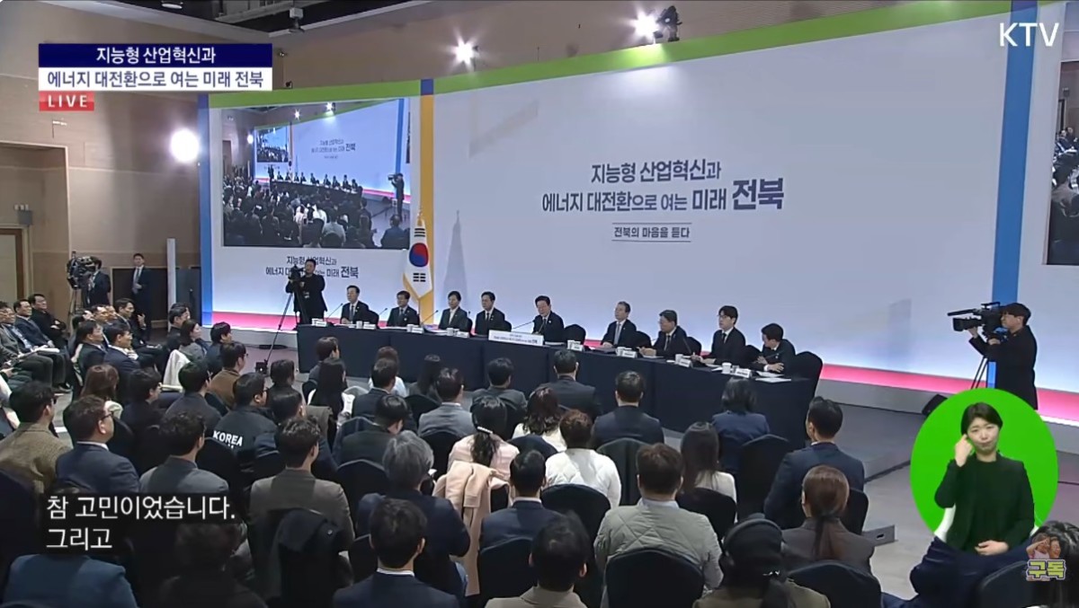 이 대통령은 "원래 새만금은 다 메워서 땅을 만든 다음 농사를 지으려고 했고, 지금은 땅 위에 태양광 패널을 깔고 있다"며 "그런데 꼭 땅을 만들어서 패널을 깔아야 하나. 수상태양광으로 하면 안되나"라고 질문했다.