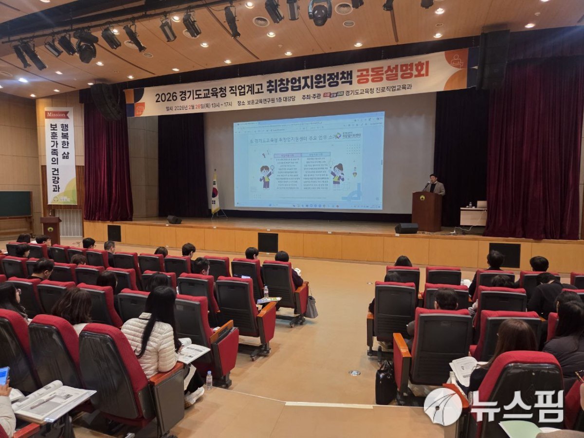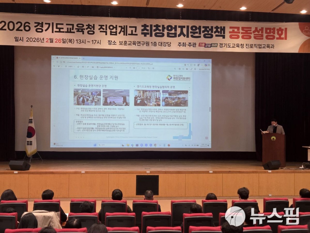 [수원=뉴스핌] 김가현 기자 = 경기도교육청이 지난 26일 보훈교육연구원에서 도내 직업계고 학생의 맞춤형 진로 성장 지원을 위한 '2026 직업계고 취·창업 지원정책 공동설명회'를 개최했다.