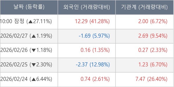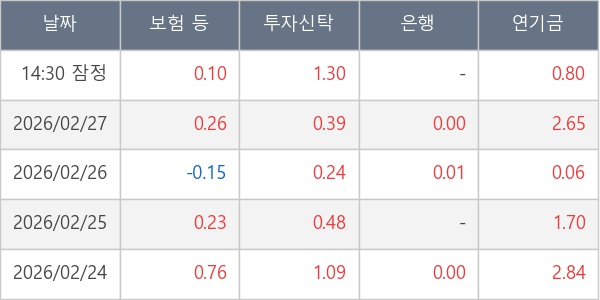 [표] 주요 기관별 순매매량 (단위 만주)