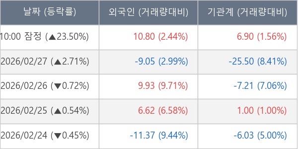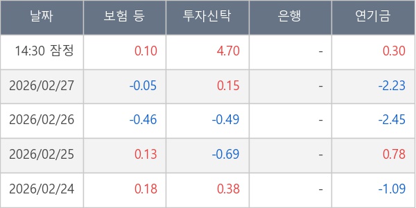 [표] 주요 기관별 순매매량 (단위 만주)