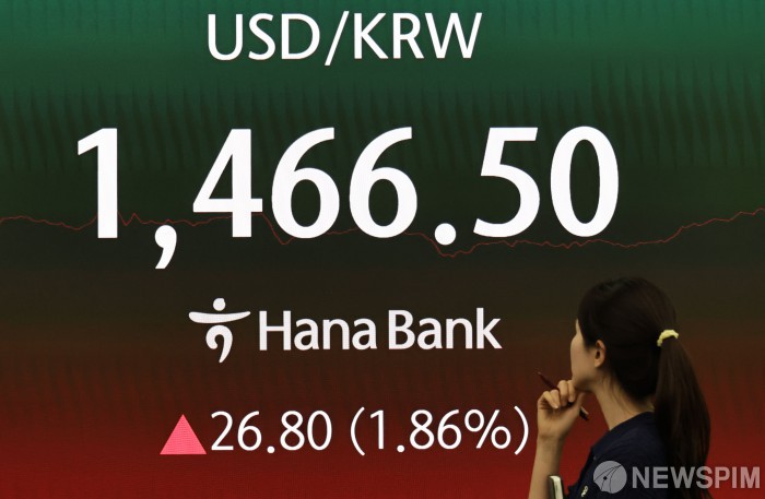 [서울=뉴스핌] 양윤모 기자= 미국과 이스라엘의 이란 공습 이후 3일 오후 서울외환시장에서 달러/원 환율은 전장 대비 26.80원 상승한 146.50원에 주간거래를 마감한 가운데, 서울 중구 하나은행 을지로본점 딜링룸에서 직원들이 업무를 보고 있다. 2026.03.03 yym58@newspim.com