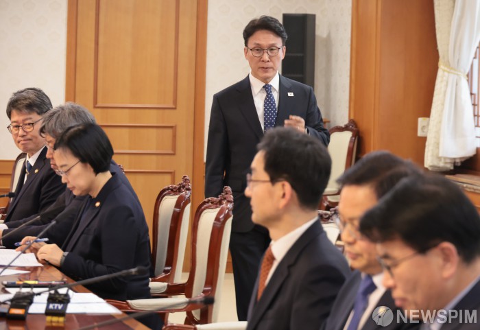 [서울=뉴스핌] 이길동 기자 = 김민석 국무총리가 3일 오후 서울 종로구 정부서울청사에서 열린 중동 상황점검 관련 긴급 관계부처회의에 참석하고 있다.2026.03.03 gdlee@newspim.com