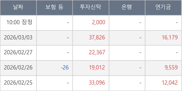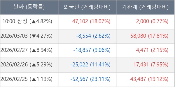 [표] 주요 기관별 순매매량 (단위 주)