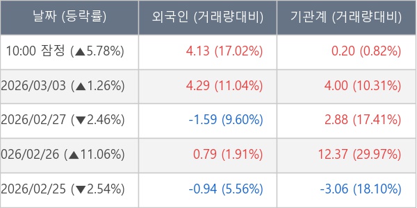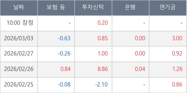 [표] 주요 기관별 순매매량 (단위 만주)