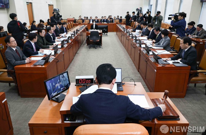 [서울=뉴스핌] 윤창빈 기자 = 김상훈 위원장이 4일 오전 서울 여의도 국회에서 열린 대미투자특별법 처리를 위한 특별위원회 제3차 전체회의에서 의사봉을 두드리고 있다. 2026.03.04 pangbin@newspim.com