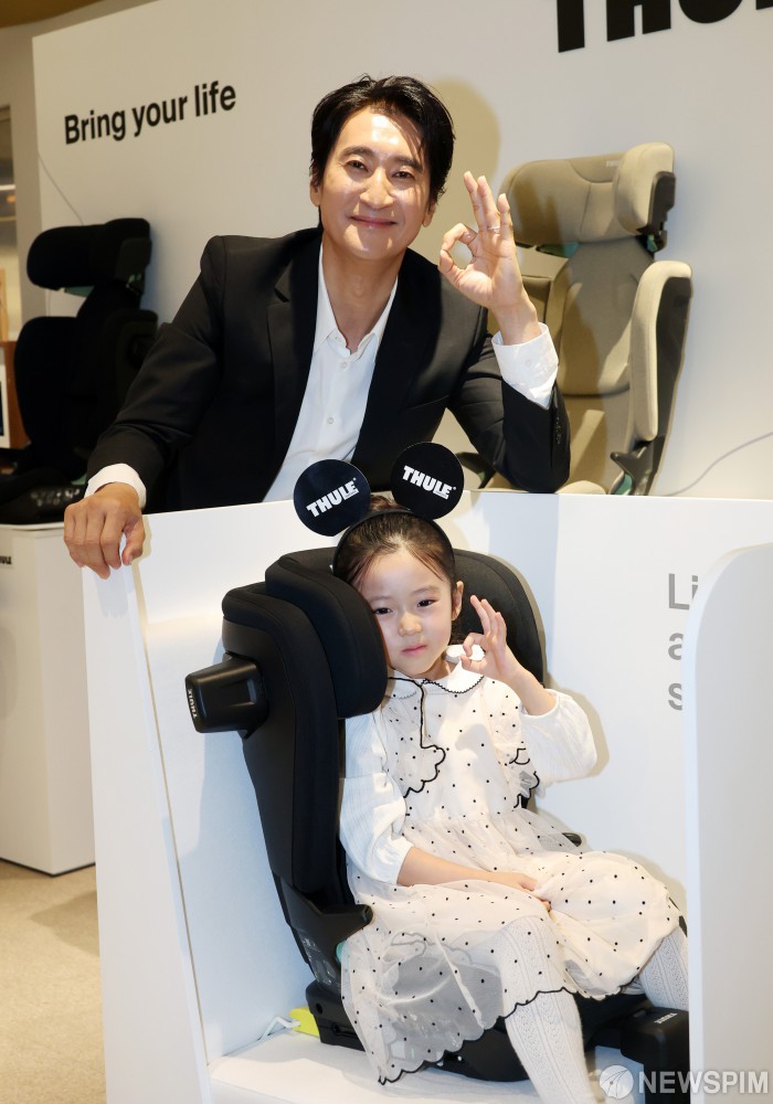 [서울=뉴스핌] 정일구 기자 = 배우 신현준과 딸 신민서 양이 4일 오전 서울 서초구 신세계백화점 강남점 '툴레 주니어 카시트' 팝업존에서 열린 '툴레 키즈와 툴레 대디가 함께 출발하는 SAFE START!' 캠페인 행사에 참석해 카시트 탑승 시연을 하고 있다. 2026.03.04 mironj19@newspim.com