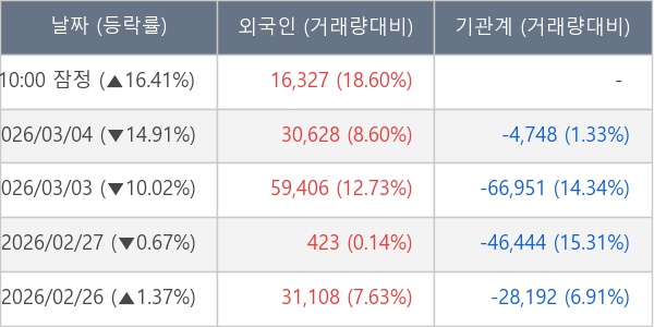 [표] 외국인ㆍ기관 순매매량 (단위 주)