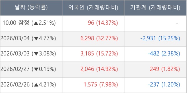[표] 외국인ㆍ기관 순매매량 (단위 주)
