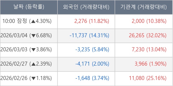 [표] 외국인ㆍ기관 순매매량 (단위 주)