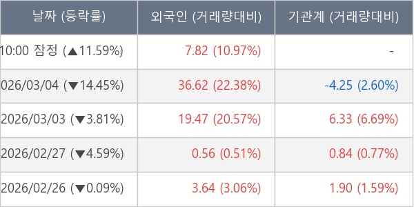 [표] 외국인ㆍ기관 순매매량 (단위 만주)