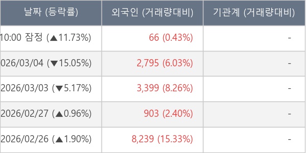 [표] 외국인ㆍ기관 순매매량 (단위 주)