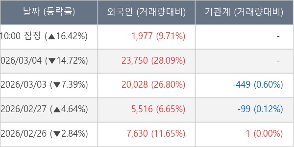 [표] 외국인ㆍ기관 순매매량 (단위 주)