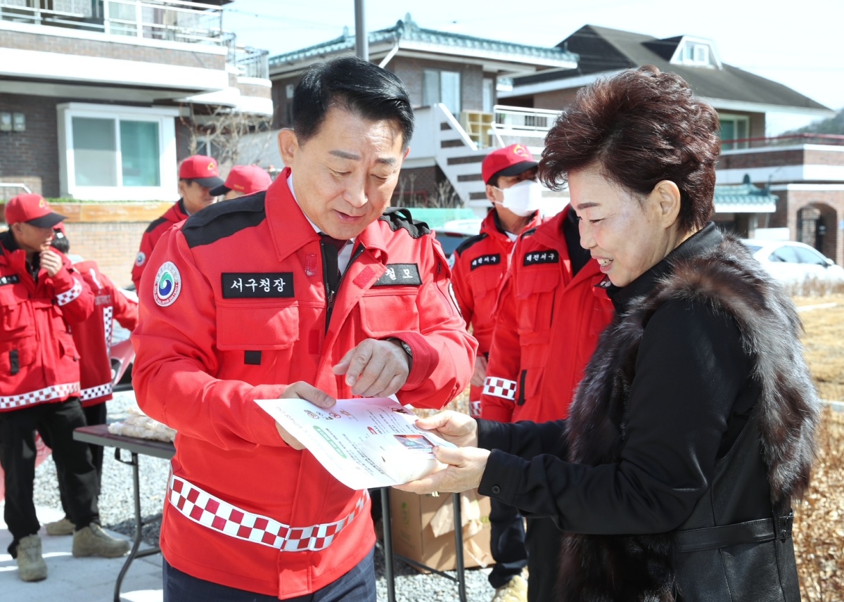 [대전=뉴스핌] 김수진 기자 = 서철모 대전 서구청장은 5일 가수원근린공원에서 봄철 산불 예방 캠페인에 나섰다. 이날 캠페인은 공원 내 가수원복합생활관 개관식 행사와 연계 진행됐다. 서 청장은 행인들에게 산불 예방 홍보 전단지와 물티슈를 배부하고 생활관 주변 무단투기 쓰레기를 수거했다. [사진=대전 서구] nn0416@newspim.com