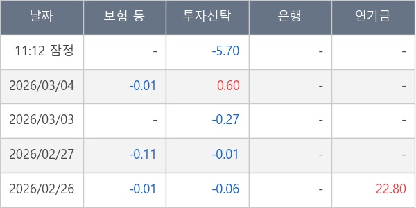 [표] 주요 기관별 순매매량 (단위 만주)