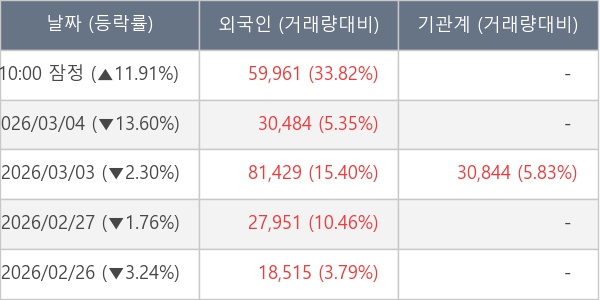 [표] 외국인ㆍ기관 순매매량 (단위 주)