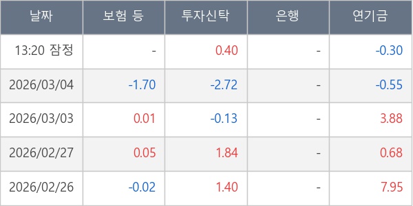 [표] 주요 기관별 순매매량 (단위 만주)