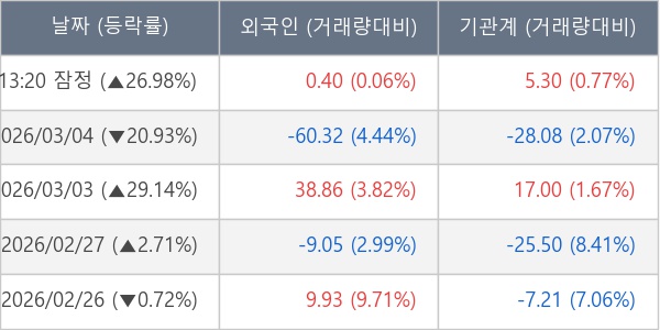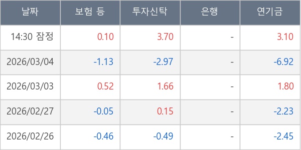 [표] 주요 기관별 순매매량 (단위 만주)