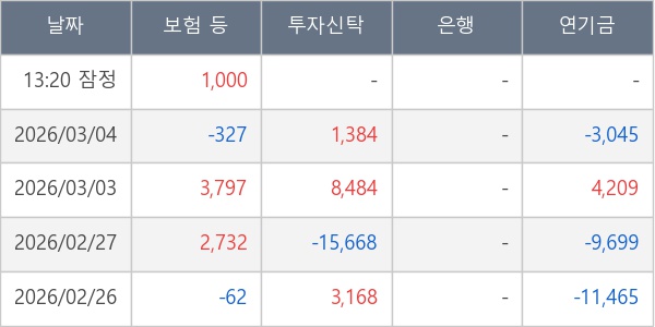 [표] 주요 기관별 순매매량 (단위 주)