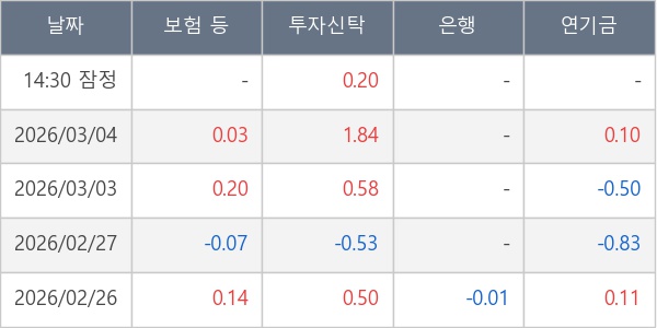 [표] 주요 기관별 순매매량 (단위 만주)