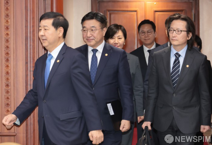 [서울=뉴스핌] 이길동 기자 = 구윤철 부총리 겸 재정경제부 장관이 5일 오후 서울 종로구 정부서울청사에서 열린 민생물가 특별관리 관계장관 TF 회의에 참석하고 있다.2026.03.05 gdlee@newspim.com