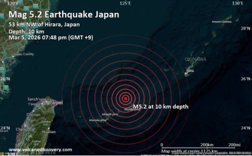 5일 일본서 발생한 지진, 자료=볼케이노 디스커버리, 2026.03.05 koinwon@newspim.com