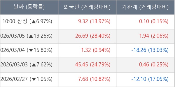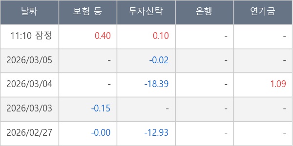 [표] 주요 기관별 순매매량 (단위 만주)