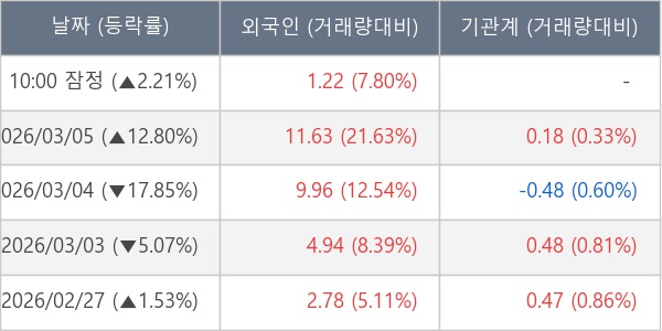 [표] 외국인ㆍ기관 순매매량 (단위 만주)