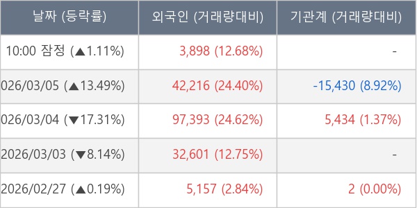 [표] 외국인ㆍ기관 순매매량 (단위 주)