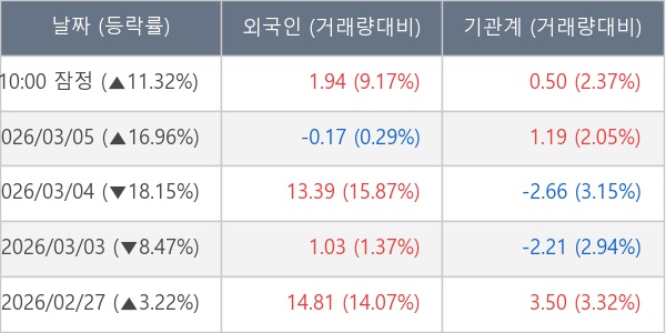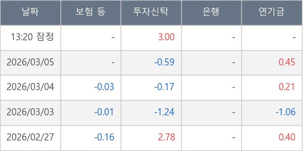 [표] 주요 기관별 순매매량 (단위 만주)